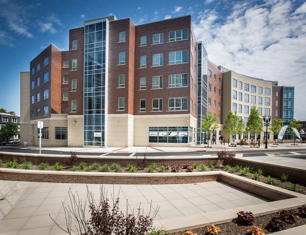 This projects façade called for primarily gray brick from Endicott bands of red brick by Belden Brick bordering the windows along with white. Belden Tristate Building Materials. Belden Tristate Building Materials.